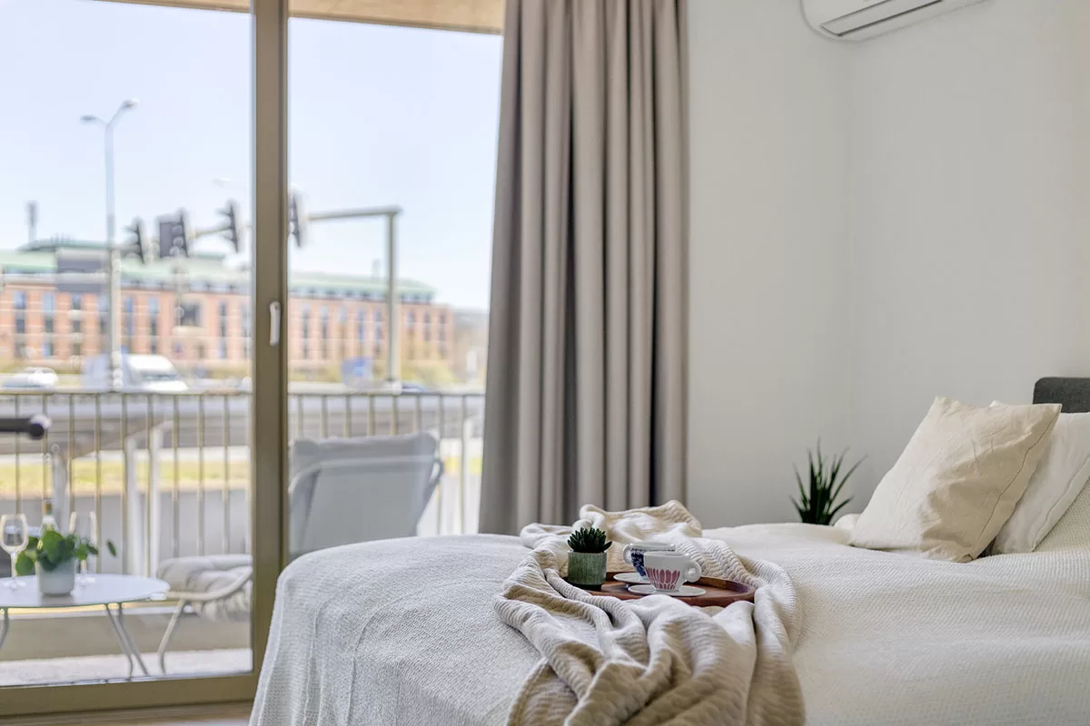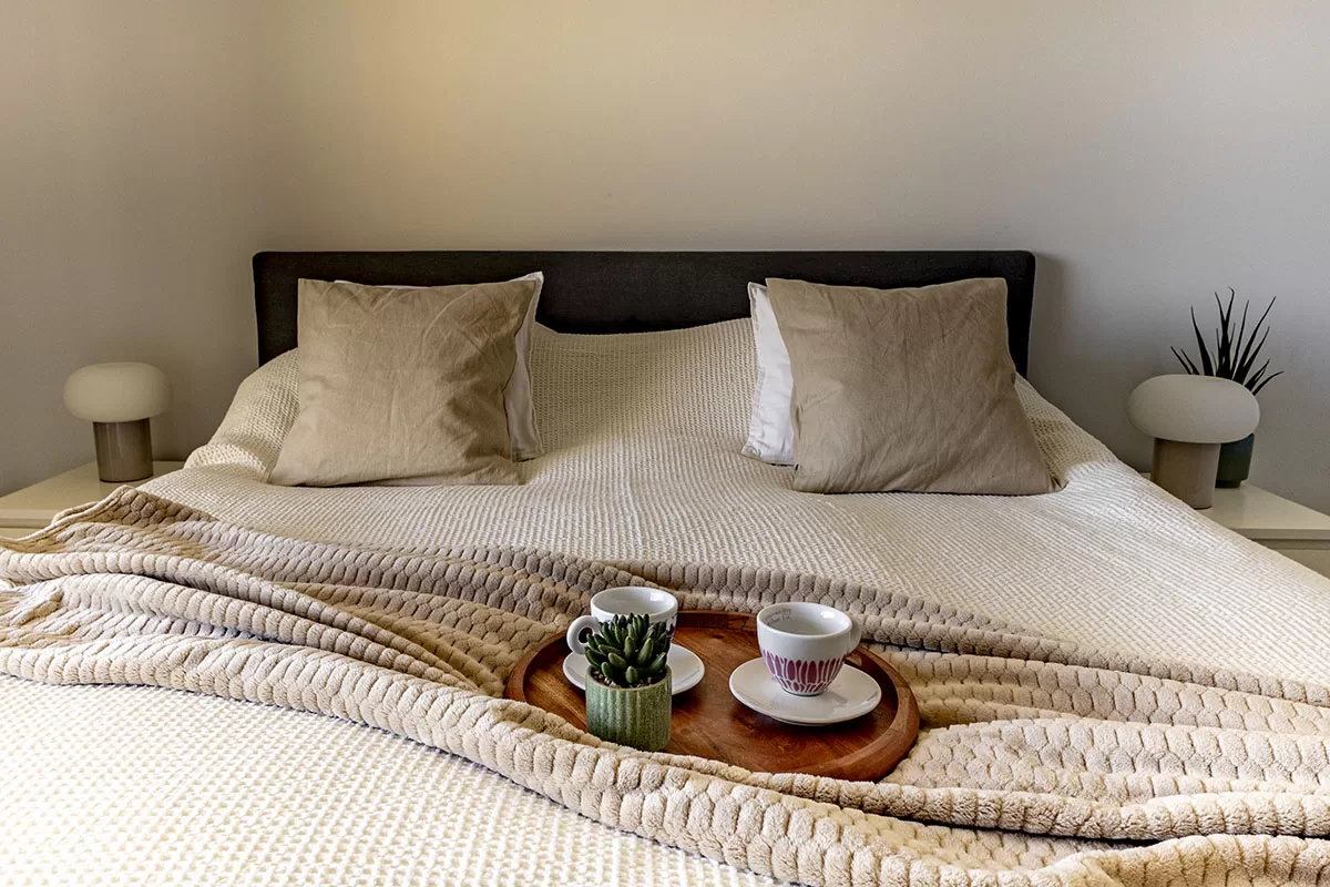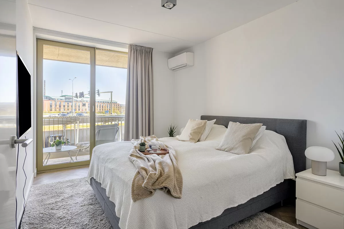 Het appartement beschikt over twee, ruime slaapkamers. De tweede slaapkamer is flexibel in te richten als werkruimte, kleedkamer of logeerkamer. De ruime master bedroom heeft een airconditioning en biedt daarom volop comfort en rust.