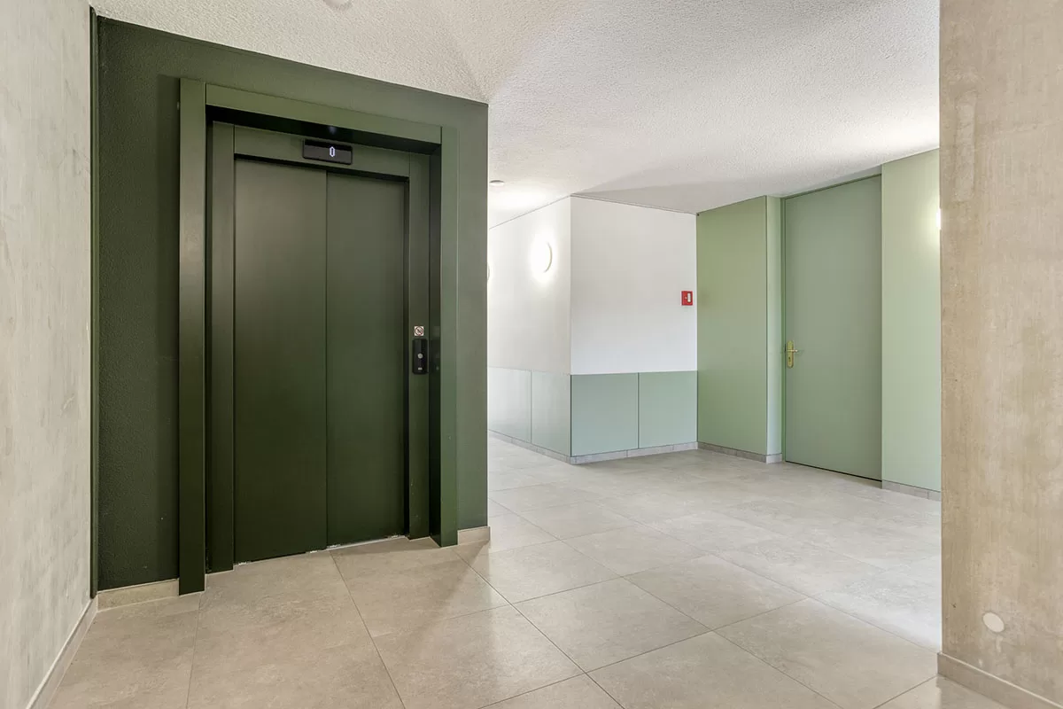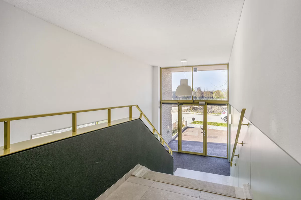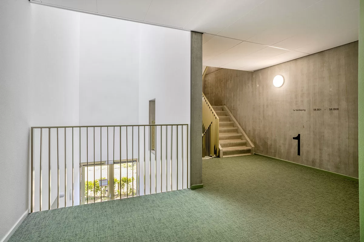 De centrale entree van Amélie is representatief en verzorgd, met een lichte en moderne uitstraling. Via de lift bereikt u comfortabel uw appartement; trappenlopen is hier niet nodig. Bij het appartement hoort een privéberging (ca. 3,25 x 1,80 m) met elektra, ideaal voor extra opslag en het stallen van fietsen. Uw auto parkeert u veilig op uw eigen parkeerplaats op het afgesloten terrein.